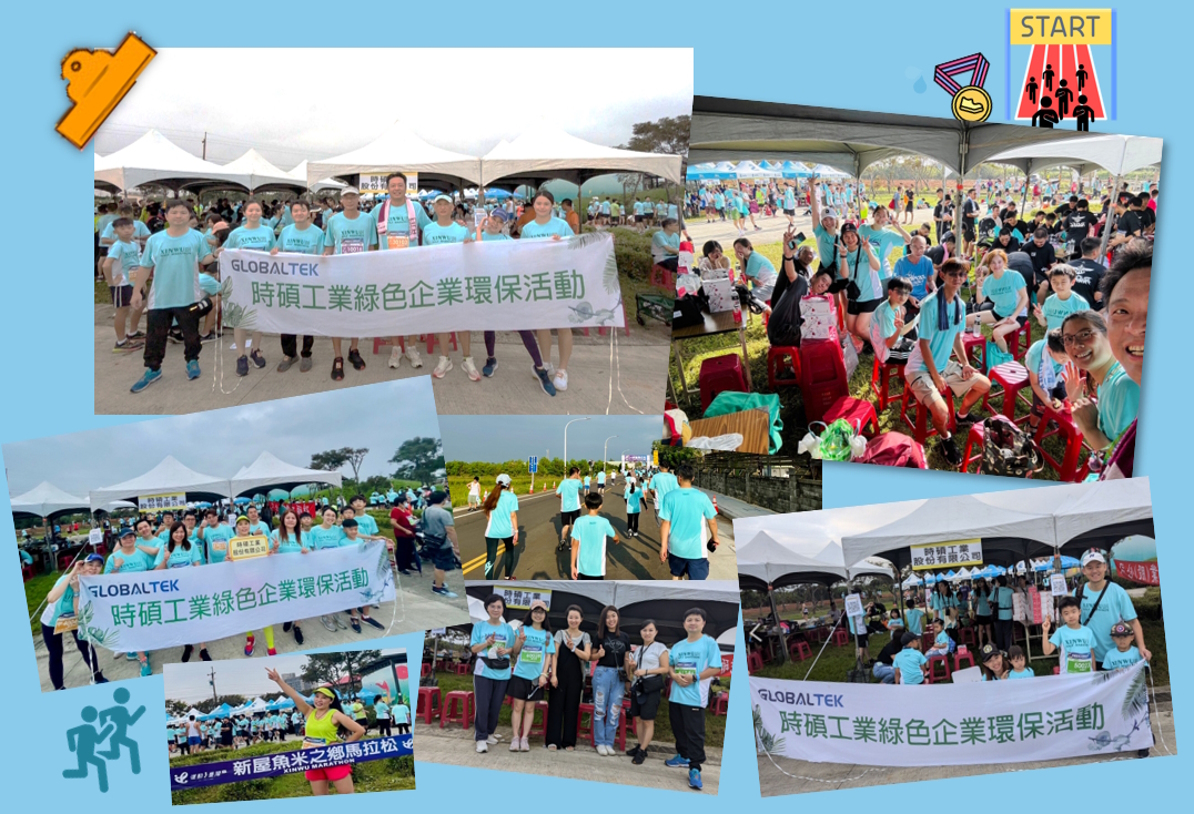 接續今年的校園植樹愛地球活動之後,時碩2024綠色企業環保活動的另一個重頭戲就是希望能結合員工,一起投入支持在地活動,一起為達成聯合國永續發展目標盡一份力。時碩工業台灣廠區位於桃園新屋及楊梅幼獅,關心新屋區活動,贊助[桃園新屋魚米之鄉馬拉松活動]新台幣10萬元,以實際行動支持在地居民的愛心行動社區,2024年10月6日由詹前偉副總親率時碩100多位同仁和眷屬熱情參與新屋魚米之鄉馬拉松活動,夥伴們不到凌晨4點就起床奔赴新屋農業博覽會基地,展現了驚人的活力和精神!
