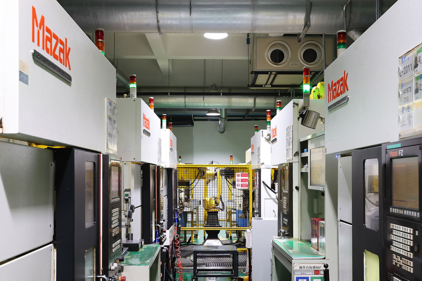 無錫廠區導入 Workcell 生產模式,將加工設備與周邊資源整合在同一工作站,大幅減少零件搬運與等待時間,形成自入料到加工完成的一體化流程,落實精益生產理念並有效消除浪費。